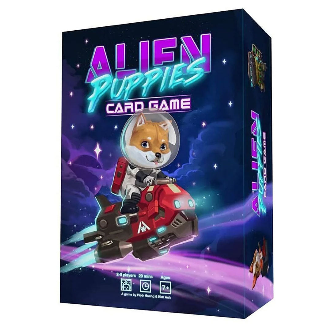 Players take turns drawing from the shuffled deck and collect Alien Puppies & other cards. Each turn, you can choose to put 1 Alien Puppy to your backyard (the space in front of you). The first person to put 3 Alien Puppies in the Backyard wins!