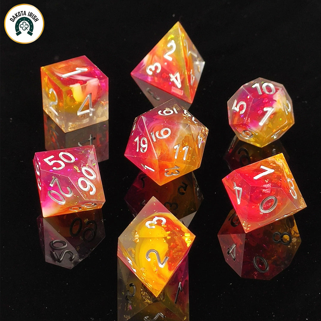 - Each 7 dice set includes: 1d20, 1d12, 2d10, 1d8, 1d6, & 1d4