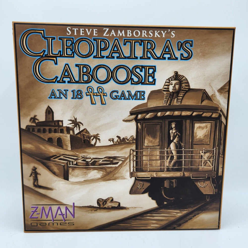 Cleopatra's Caboose is a train game for 3 to 5 players that's based in Ancient Egypt. Each turn, players bid for the right to utilize a game designer of their choosing which denotes both the turn order and a special ability that can be used that turn.