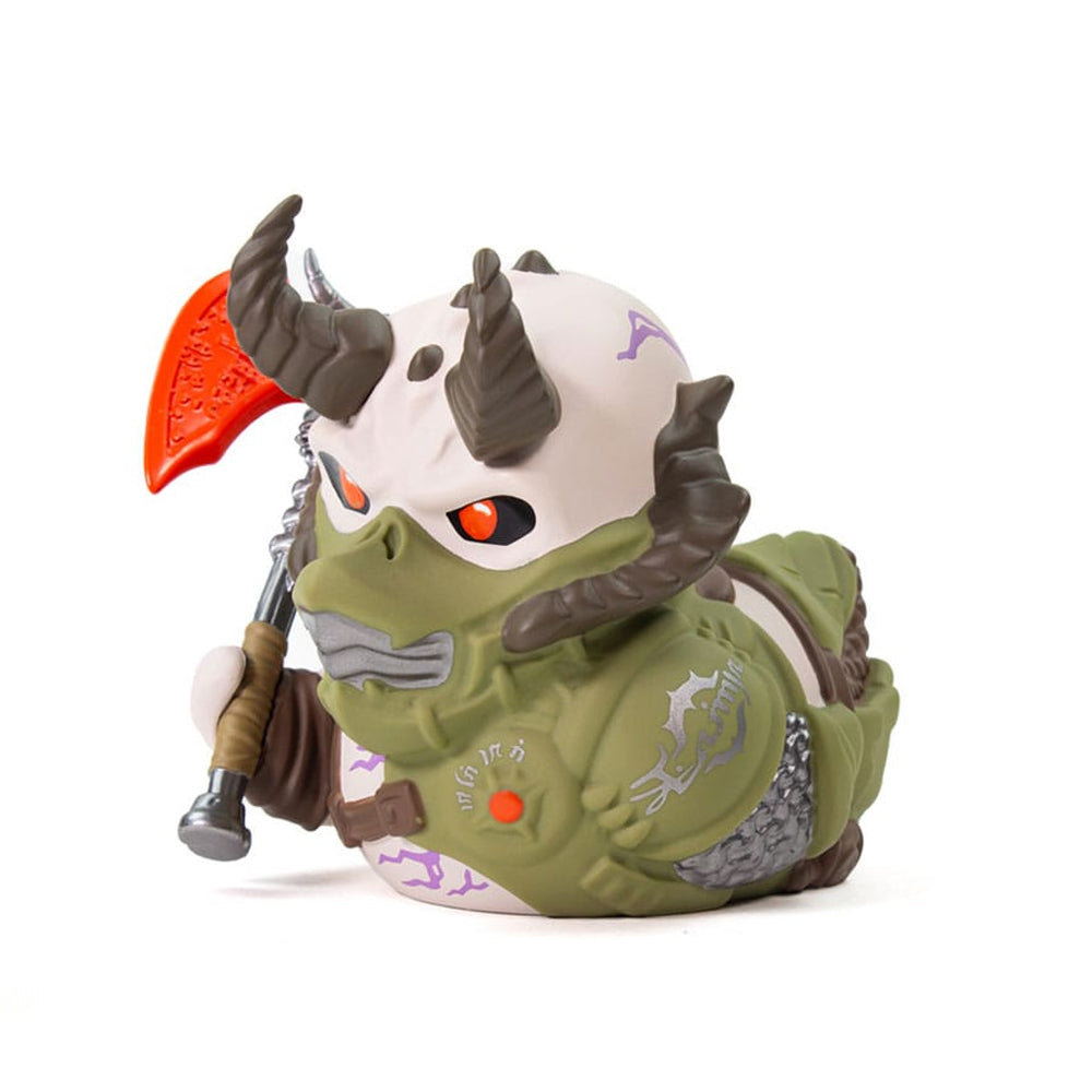 Little is known about this mysterious double-axe wielding demon with horns. But just from the mere sight of him, we can tell he’s at the beak of his performance, even as a quacking duck! This one of a kind collectible is great for fans of the series to stock up on.
