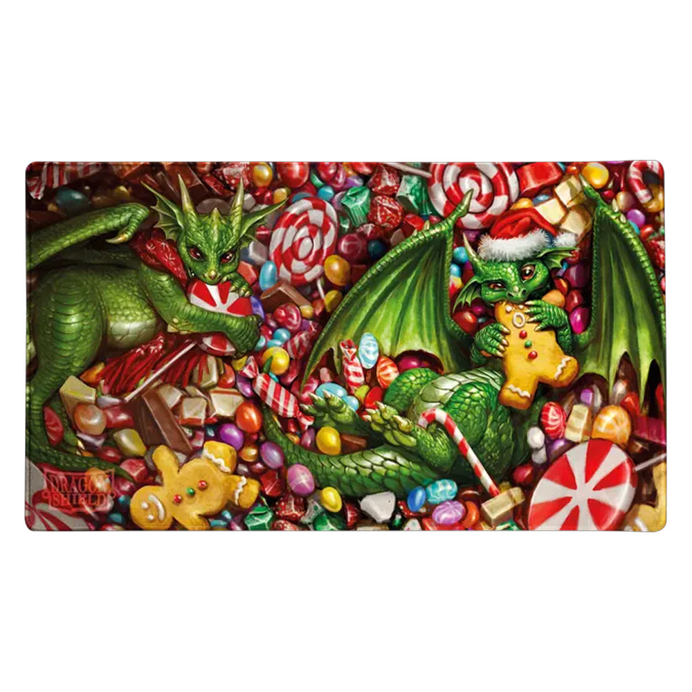 Embrace the season's cheer with the silky smooth playmat featuring the 2024 Dragon Shield Christmas dragons.