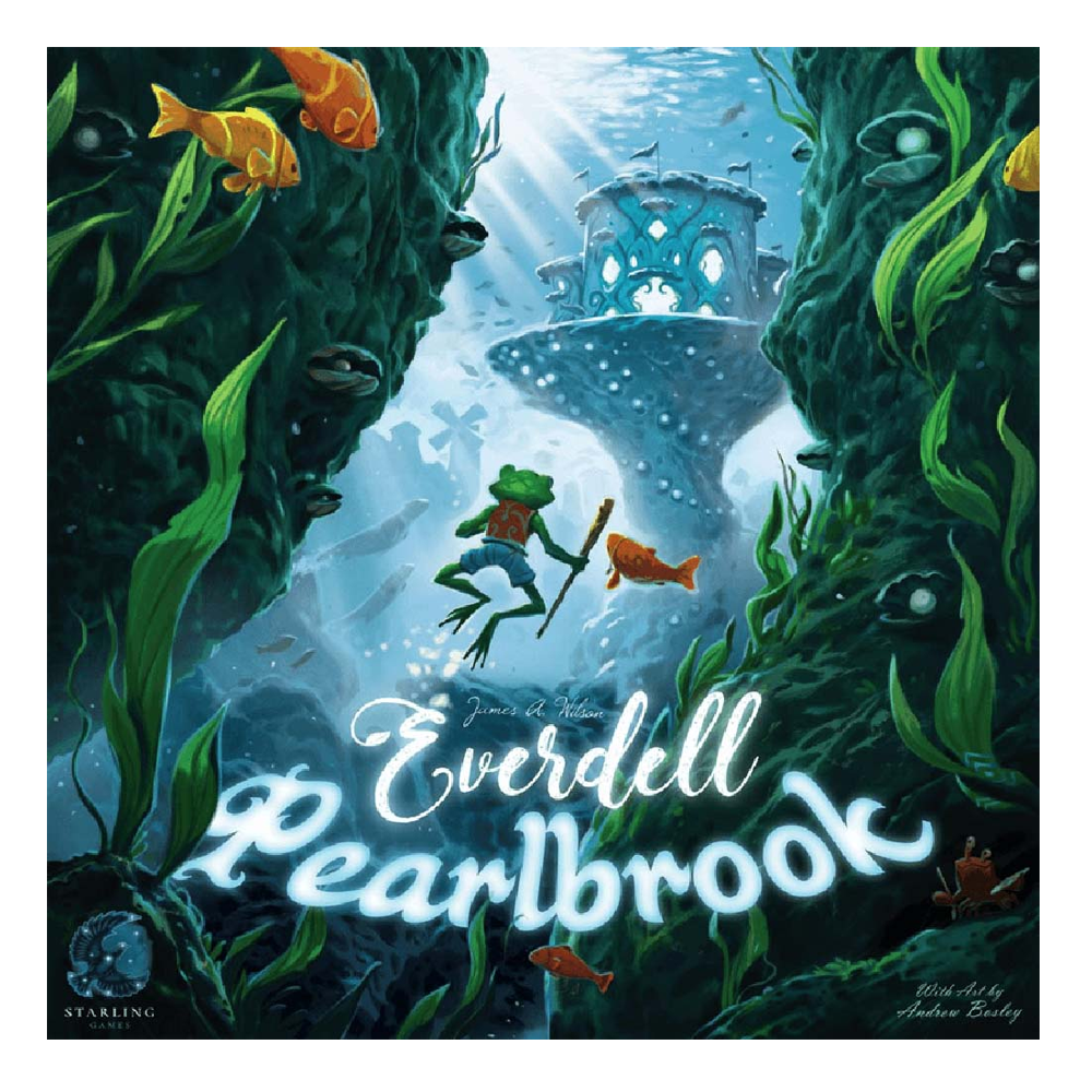 Explore a new underwater society in Pearlbrook, the first expansion for Everdell! Pearlbrook introduces a new side board, the river board, where you'll send your frog ambassador to gather a new resource: pearls. You'll also encounter new aquatic critters and constructions! Collect enough pearls and you can construct fabulous wonders and adornments, to make your city the pride of Everdell!