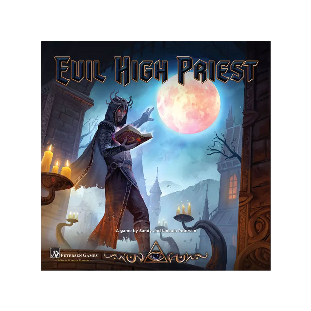 Evil High Priest is a worker-placement game in which the players take the part of priests of a Lovecraftian entity. All players worship the same Great Old One, but they are emphatically not allies. When they awaken their Great Old One, he will decide which among them is the best (based on VPs) and appoint that priest, and that priest only, to be the High Priest, who wins.