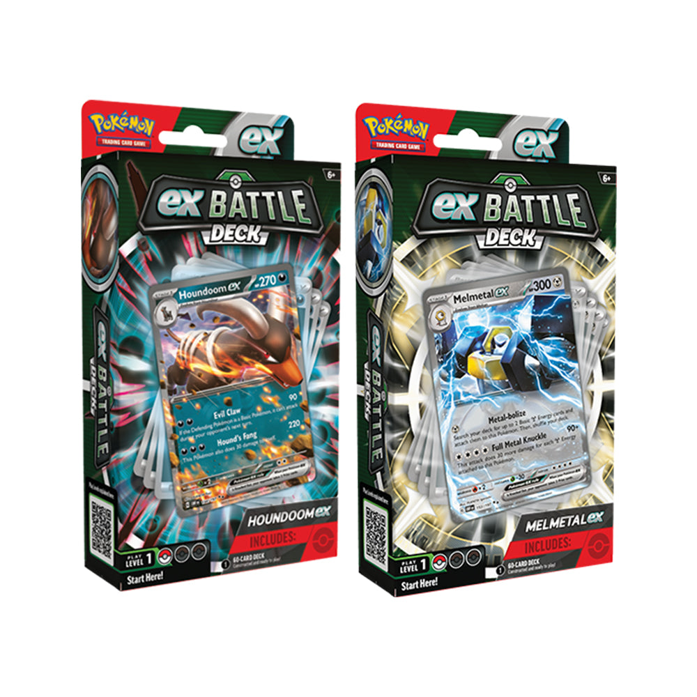 Powerful Pokémon ex are ready to charge onto the battlefield in the new Pokémon TCG: ex Battle Decks (Melmetal and Houndoom).