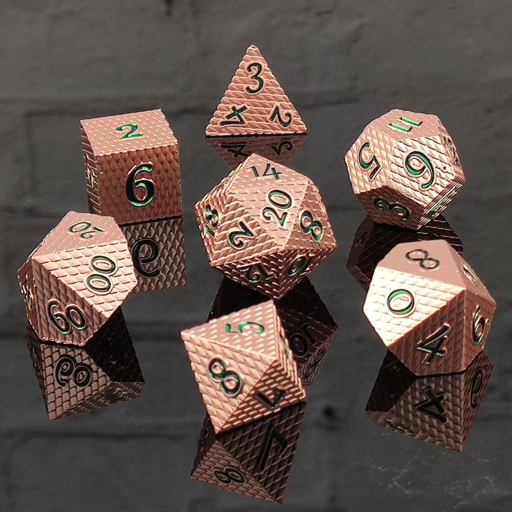 Copper Dragon Scale Metal 7-Polyhedral Dice Set