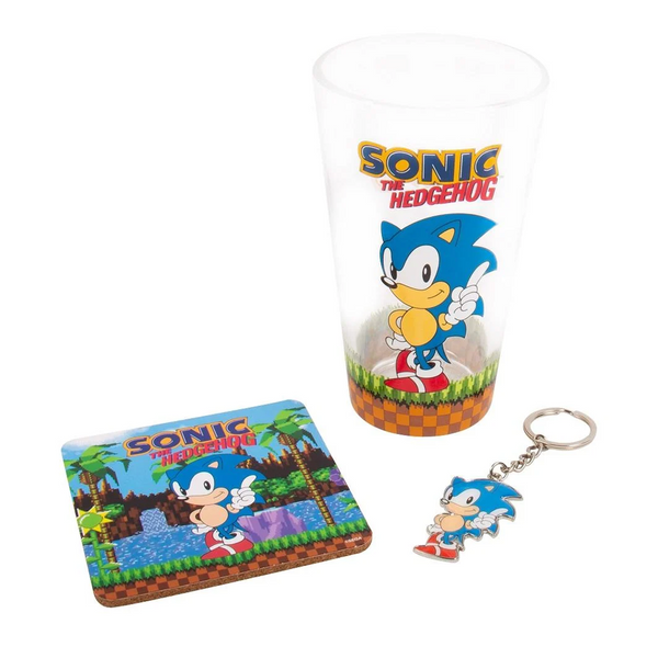 Sonic The Hedgehog Keyring, Glass and Coaster Gift Set
