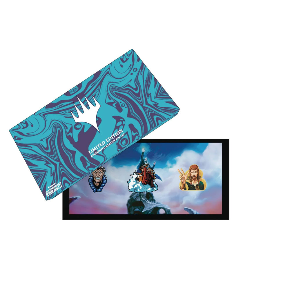 This exclusive blue collection pin set comes with 3 pins: Brainstorm, Mana Leak Glitter Variant and Counterspell. Set also comes with a ARt Card (AR enhanced art card) of Time Warp. Comes in a gorgeous gift box.