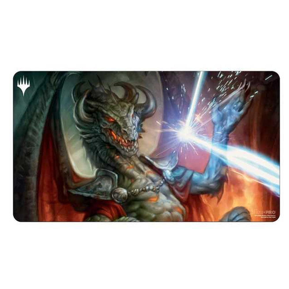 Playmats feature popular Magic: The Gathering artwork. Made with a soft fabric top to reduce damage to cards during play and a non-slip rubber backing to keep the playmat from shifting during use, playmats enhance the gameplay experience. With dimensions of approximately 24 in. x 13.5 in., a playmat also makes an excellent oversize mousepad for home or office.