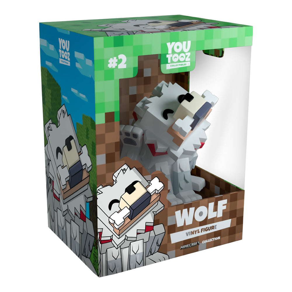 Sitting at 4 inches tall with a playful rear paw raised up to scratch at his cocked head which looks upwards, they hold a bright white bone triumphantly in their mouth. A perfect grey mane sits around their head and matches their point ears as a vibrant red collar sits around their neck and a long tail wraps around their side. The exterior of their packaging sees the wolf sitting in the middle of the tall trees of a wooded forest as two little cubs play delightedly. While the interior surrounds them in brown first blocks, which continue onto the protective sleeve as their figure can be seen through the large clear window at the packaging’s front. This collectible ships in a matte, embossed, protective outer sleeve and a custom-sized plastic protector for maximum protection during shipping.