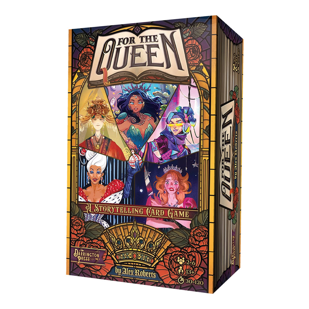 For the Queen is a card-based story-building game that you and up to five other players can begin playing in minutes. Choose your queen from among fourteen gorgeously varied illustrations—or start from scratch—and use the prompt cards to collaboratively tell a story of love, betrayal, doubt, and devotion.
