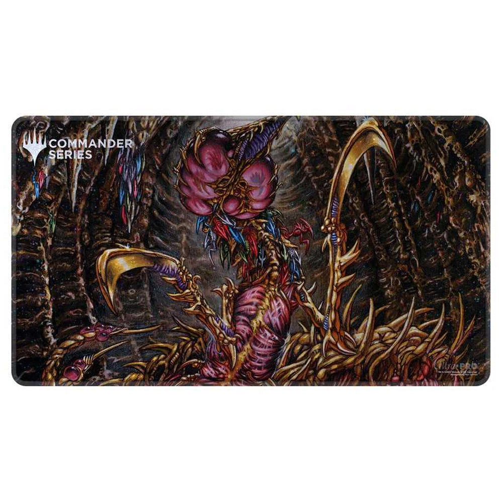 Commander Series Holofoil Playmats feature popular artwork of your favorite Commanders from Magic: The Gathering on a shiny holofoil printed material! Made with a soft fabric top to reduce damage to cards during play and a non-slip rubber backing to keep the playmat from shifting during use, playmats enhance the gameplay experience. The stitched edges offer an added premium feel. With dimensions of approximately 24 in. x 13.5 in., a playmat also makes an excellent oversized mousepad for home or office.