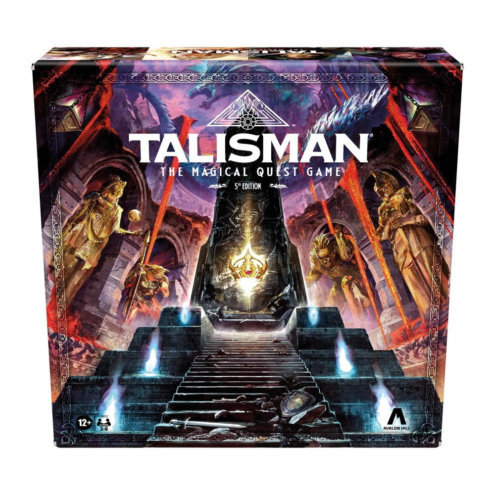 Welcome, champions, to the magical land of Talisman! The otherworldly artefacts known as Talismans have once more descended onto the mortal plane, signalling the dawn of a new era – and the need for a new ruler! In the Talisman: The Magical Quest Game, 5th Edition, set forth on an epic adventure, racing to be the first to obtain a Talisman, reach the Crown of Command in the centre of the board and defeat the elder dragon to win. With a diverse range of characters to choose from and a vast world of possible scenarios, this strategy game for teens and adults offers limitless adventures! Includes a large gameboard, 12 Character figures, 12 Character cards, 100 Adventure cards, 24 Spell cards, 18 Purchase cards, 4 Talisman cards, 1 Toad card, 6 Toad tokens, 114 counters, 38 Fate tokens, 12 Alignment tokens, 30 coins, 3 six-sided dice and an easy-to-follow rulebook.