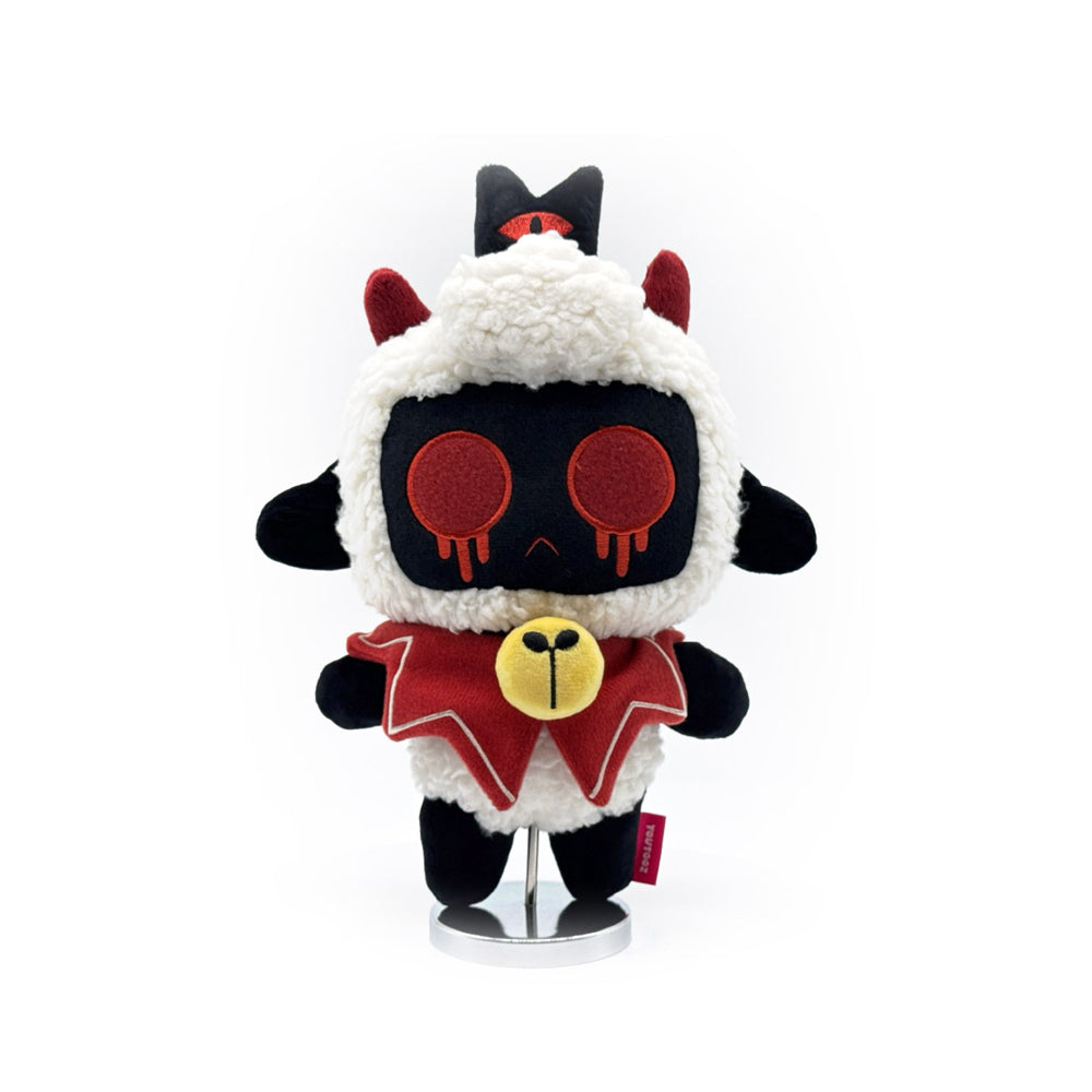 The grand leader, the truth seer, the overall ruler... as a plush! The Lamb is back and is standing at 9 inches, dressed with a small black hat with a red eye symbol in the center and wears a red cover with a yellow bell in the center. The arms of the Lamb are reaching out to its sides and its wide round eyes are a deep red color with some of the red dripping downward. This plush was designed with the community member @oIceyYT and is made out of 100% soft PP cotton and is generously filled with stuffing, great for cuddling or starting your own cult with!