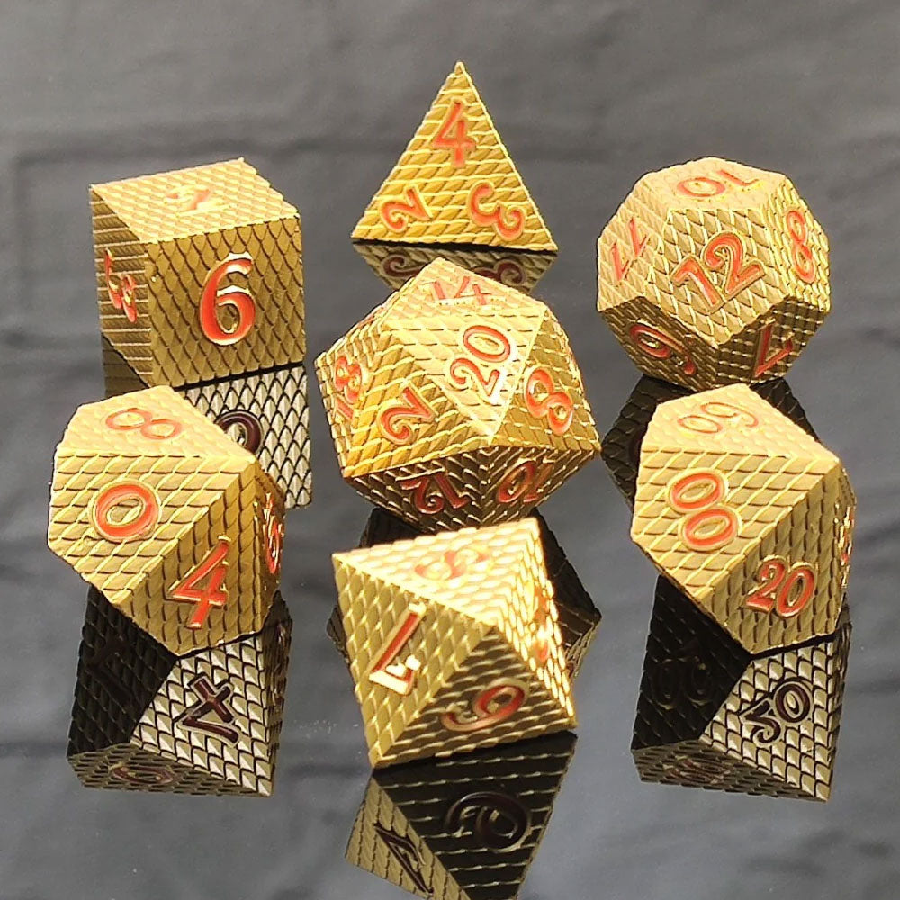 Gold Dragon Scale Metal 7-Polyhedral Dice Set