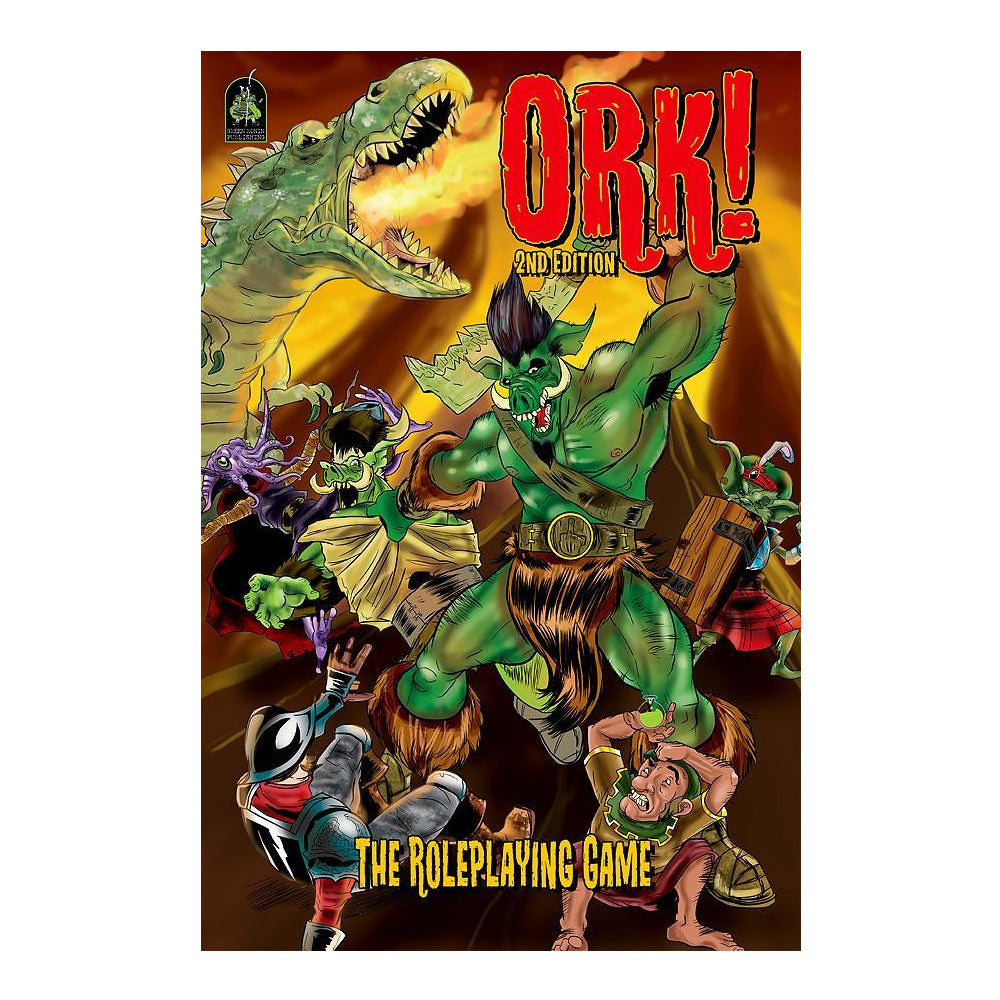 Shut up! You am Ork! Enter the bone-cracking World of Orkness with Ork: The Roleplaying Game. This new edition is the standalone, streamlined roleplaying game of orkish mayhem: a "beer and pretzels" game where monstrous, hilarious adventure matters more than rules and tables. Claw your way out of the Gunk Pit, earn your name with acts of spectacular violence, and bring terror to the Squishy Man villages in the name of Almighty Krom.