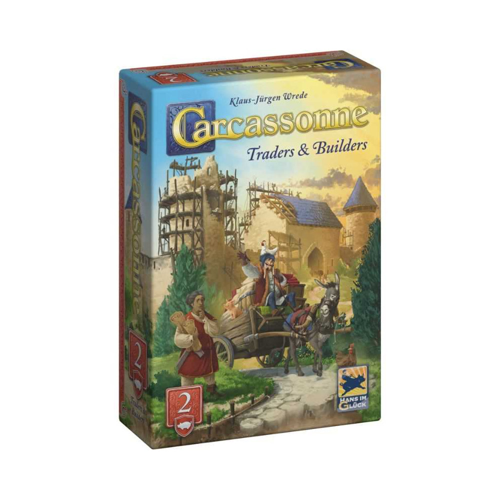 In this expansion for Carcassonne, traders and builders arrive in the cities. Collect goods and send your pig to the fields for extra points. The builder speeds up the construction of your roads and cities. Included in the expansion are 24 new land tiles, 6 builders, 6 pigs and 20 goods tokens.