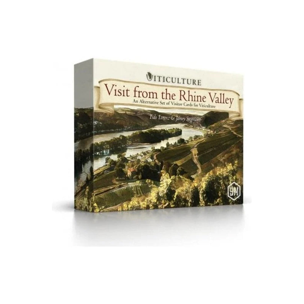You have new visitors! Visit from the Rhine Valley, an expansion for Viticulture, provides you with a new set of eighty visitor cards, which focus less on victory points and more on the wine business itself. These cards have their own unique backs as they must be played without other visitor cards from Viticulture, Tuscany, and Moor Visitors.