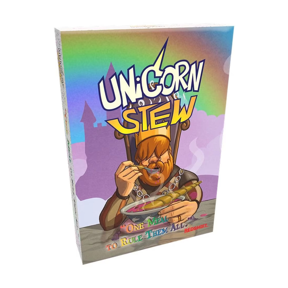 Each round a King's Menu card is revealed, detailing what he is in the mood for. Each player selects an order card from their hand hoping it matches closer than the other players. All Order cards are revealed simultaneously, and the winner claims the Menu card. Doubles always cancel, and Unicorn stew will usually win but watch out for sabotage cards from other chefs. Clan three Menu cards of the same ingredient or 5 of the same fining option to win!
