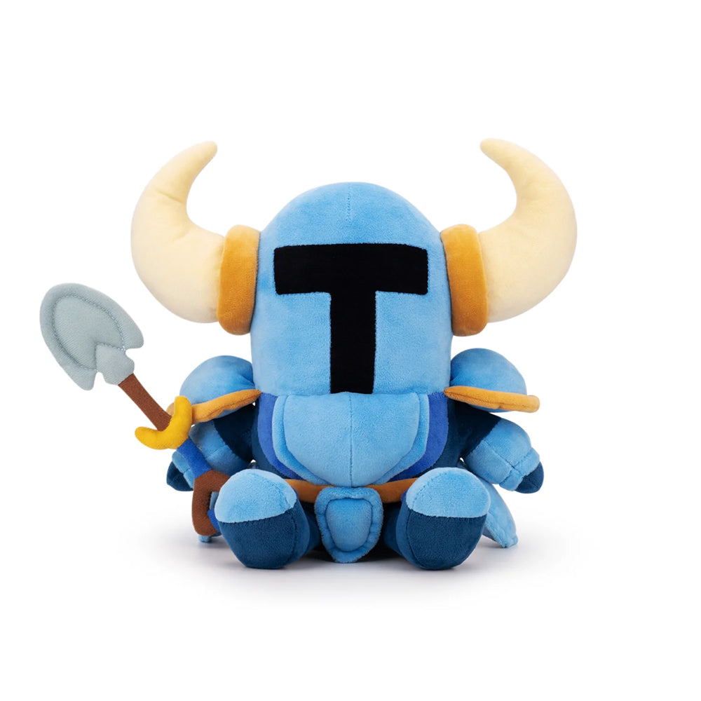 Shovel Knight has dug his way into Youtooz for a powerful plush debut! (and totally not for our treasure!) At 9 inches tall with two long curved horns stretching out from the blue helmet that covers his head and leaves a dark ‘T’ shaped visor at its center, a trusty Shovel Blade sits in his arm at the ready! Taking a break from adventuring to sit with his legs kicked forward, the two-toned blue armour that protects his body is highlighted with sharp gold accents. This plush is packed to the seams with 100% PP cotton and is made of the softest minky material, absolutely perfect for cuddling and helping you hunt treasure to your heart's desire!