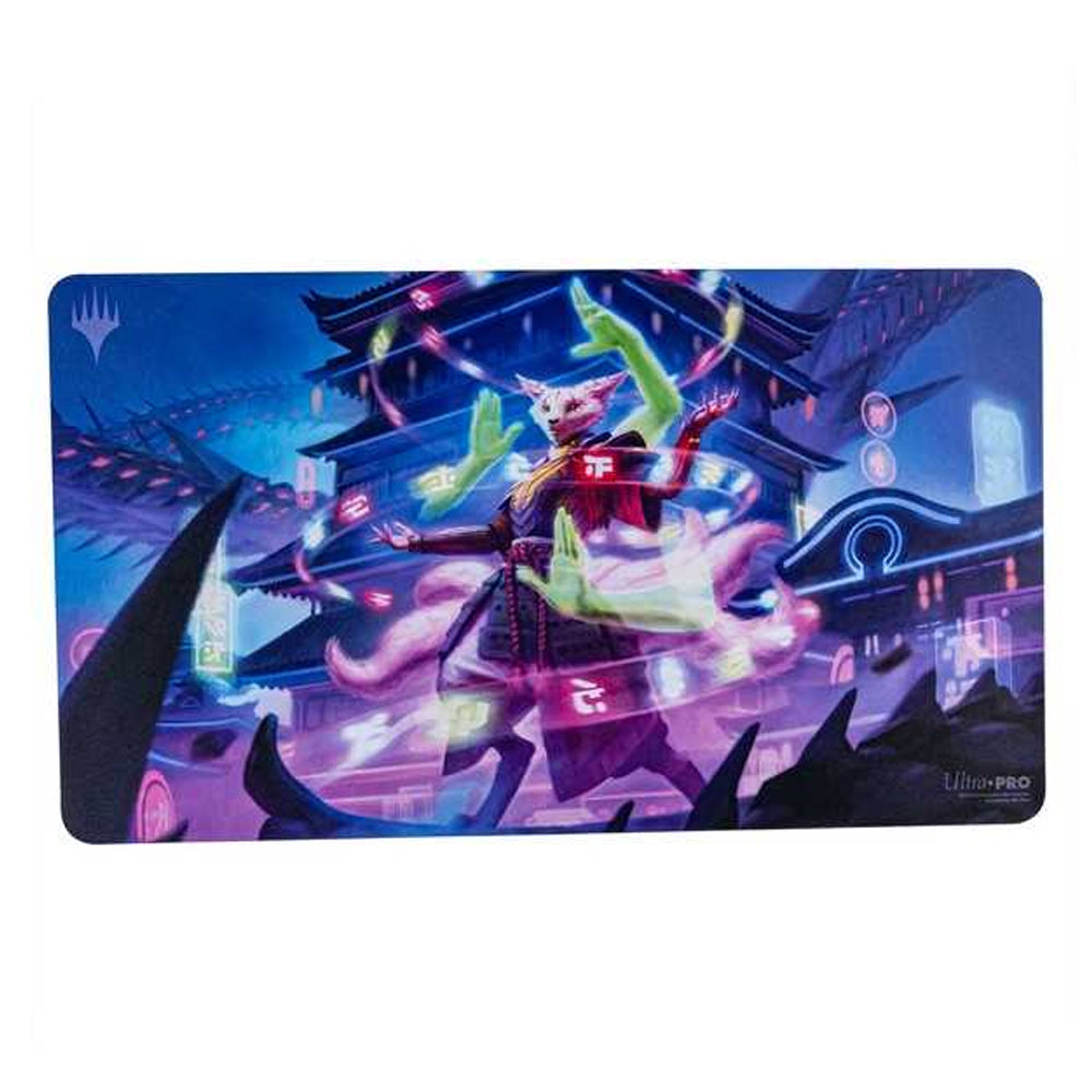 Playmats feature popular Magic: The Gathering artwork. Made with a soft fabric top to reduce damage to cards during play and a non-slip rubber backing to keep the playmat from shifting during use, playmats enhance the gameplay experience. With dimensions of approximately 24 in. x 13.5 in., a playmat also makes an excellent oversize mousepad for home or office.
