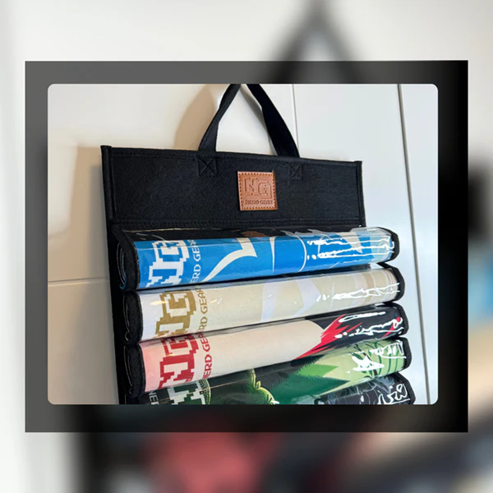 The first purpose built organization and storage solution for your favorite playmats! Great for Magic the Gathering (MTG) playmats and other TCGs!
